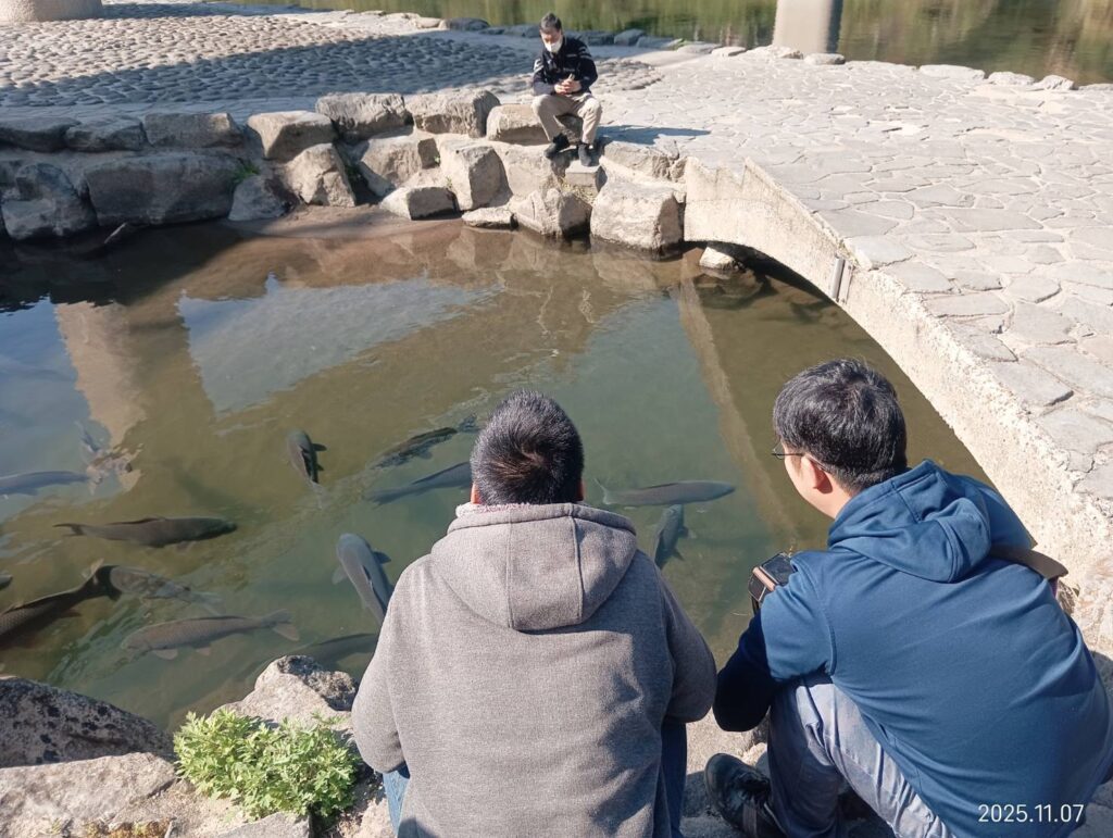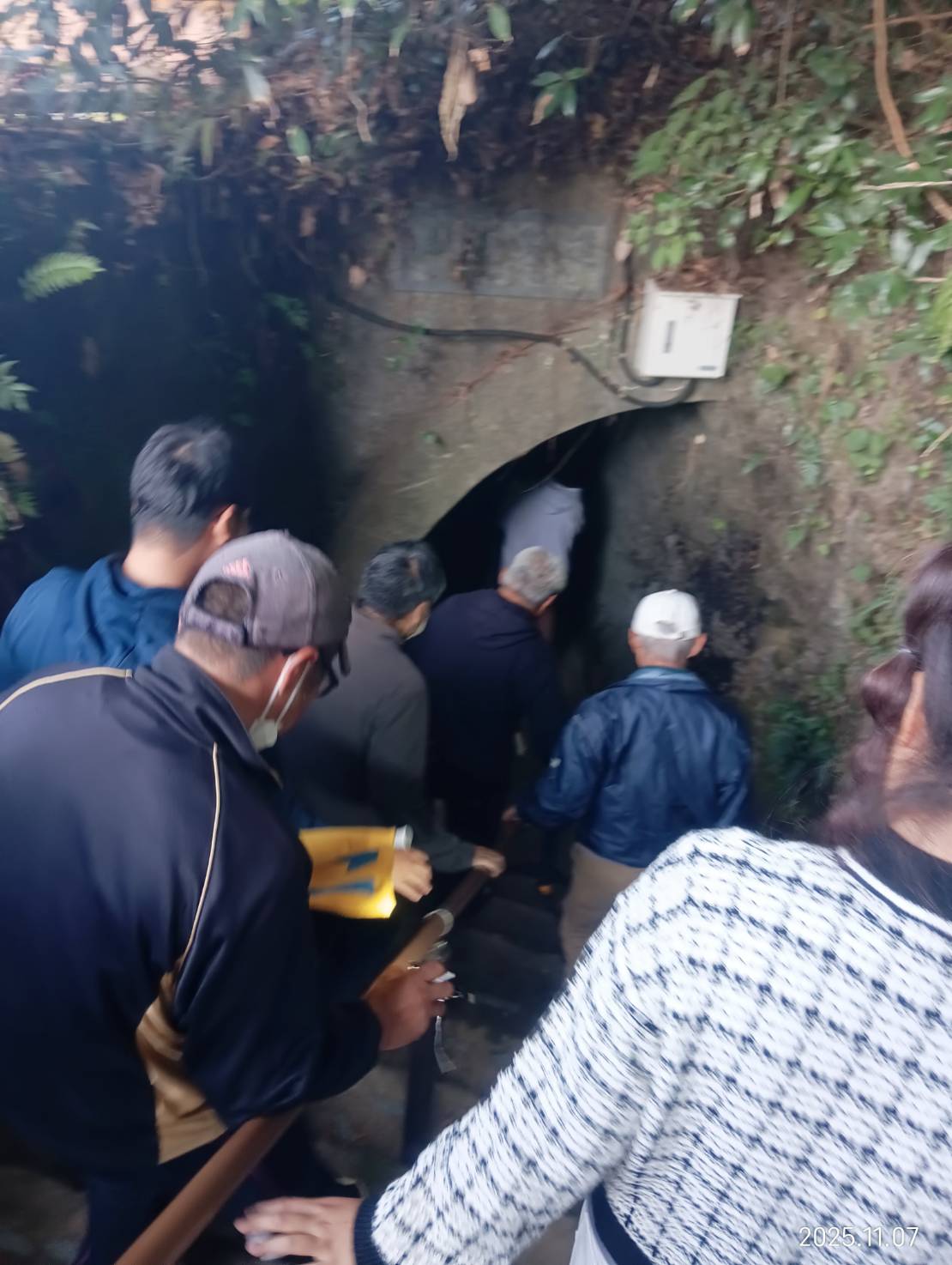 禅海和尚像の前で洞窟と一緒に記念撮影。