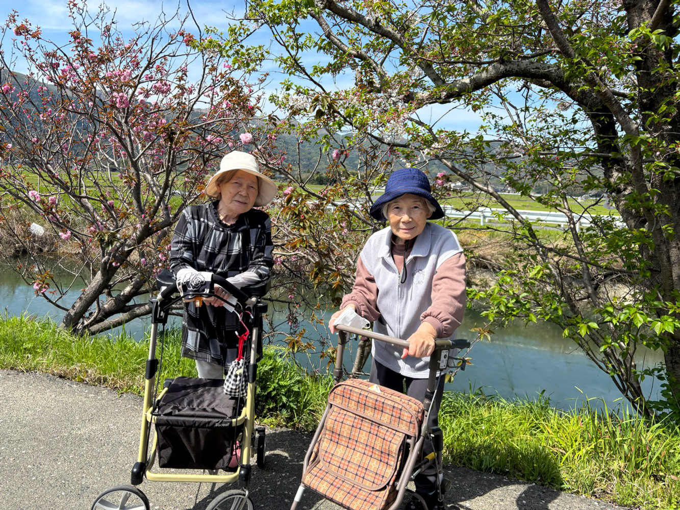 さらいの笑顔あふれるお散歩タイム 2026.04.13 令和8年4月11日(土)さらいでは暖かな春の訪れとともに、近隣の散歩コースへ外気浴に出かけました。 当日はちょうど桜が満開!風に舞う花びらの中、自然の息吹を感じながら穏やかなひとときを過ごしていただきました。 散策中、川沿いに咲く八重桜を眺めていると、「あっちにはまだ蕾があるね」と新しい発見も。「また次も見に来ようね」と会話も弾み、皆様の弾けるような笑顔が印象的でした。 道中には桜だけでなく、色鮮やかなチューリップや椿、ツツジも咲き誇り、まさに季節の彩り尽くし。心身ともにリフレッシュできた素敵な1日となりました。 前のページ 一覧へ戻る 次のページ